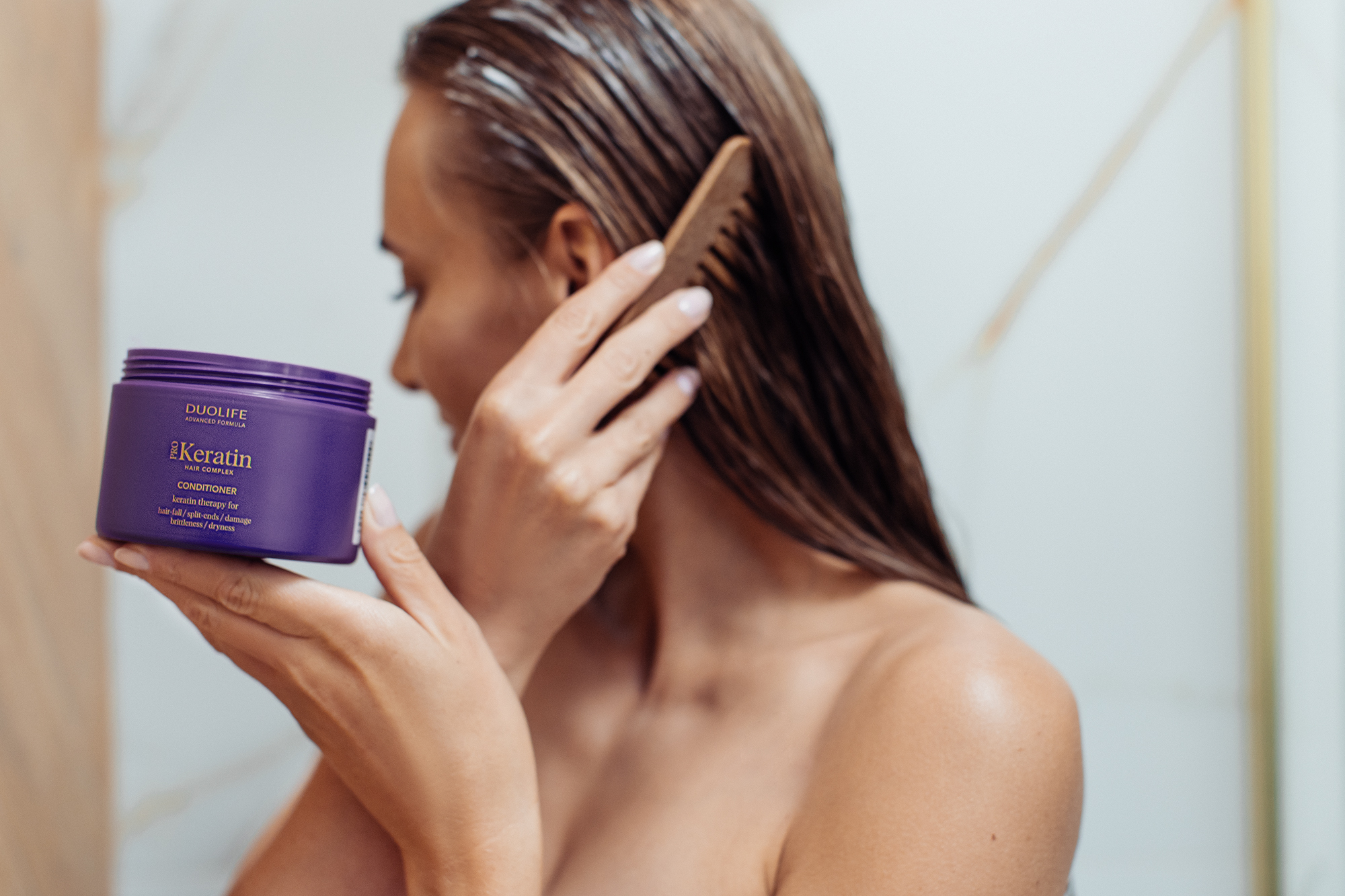Keratina hidrolizată ajută la refacerea structurii firului de păr, netezind cuticula și prevenind despicarea vârfurilor.